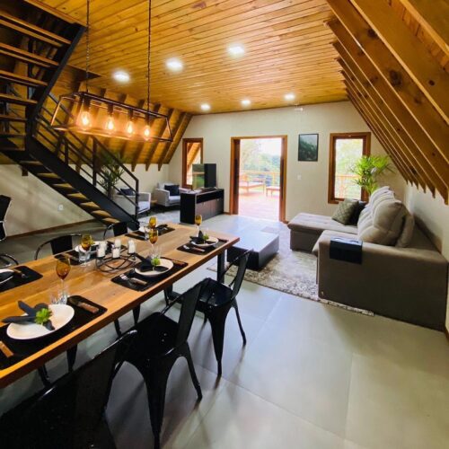 É um espaço de conexão, diversão e relaxamento, onde cada canto traz uma nova descoberta. Seja desfrutando de um banho relaxante na jacuzzi, compartilhando histórias ao redor da lareira ou apreciando as paisagens, nossa área comum é o coração do nosso refúgio.