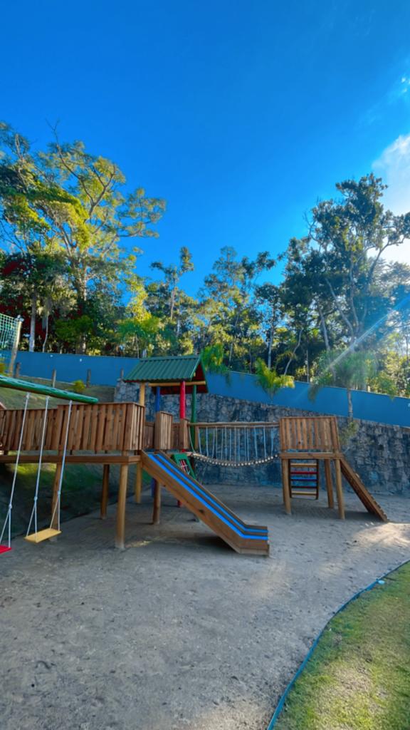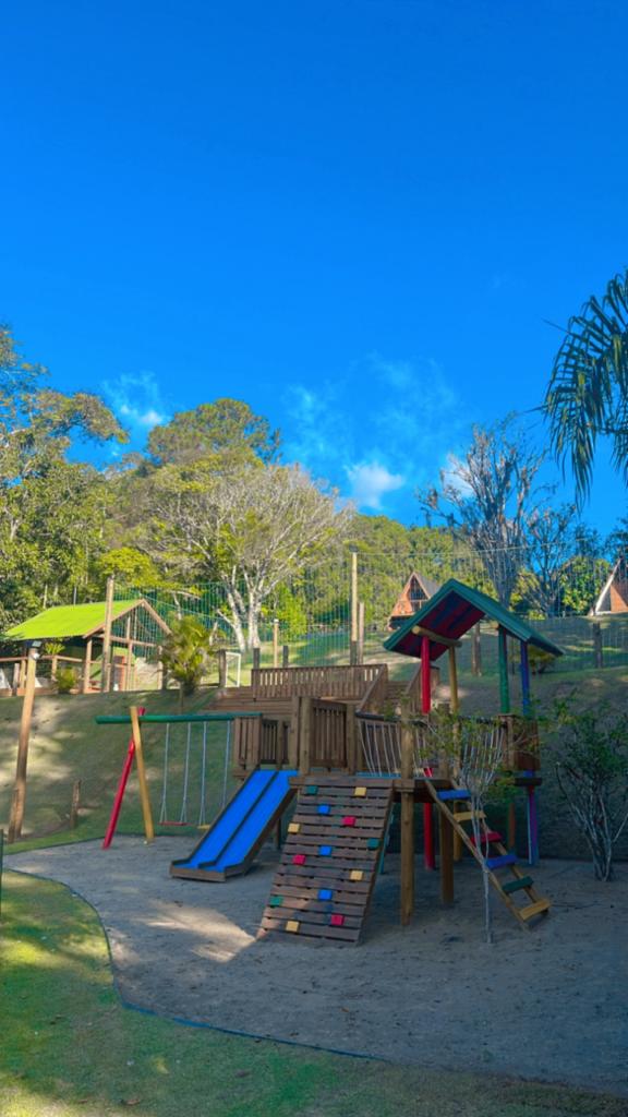 Além dos chalés, nossa área comum é um tesouro de entretenimento ao ar livre, situada às margens de um lago tranquilo. Oferece diversas atividades para todas as idades, incluindo um playground colorido, lareira acolhedora, casa na árvore, horta, campo de areia e interação com animais na mini fazendinha.